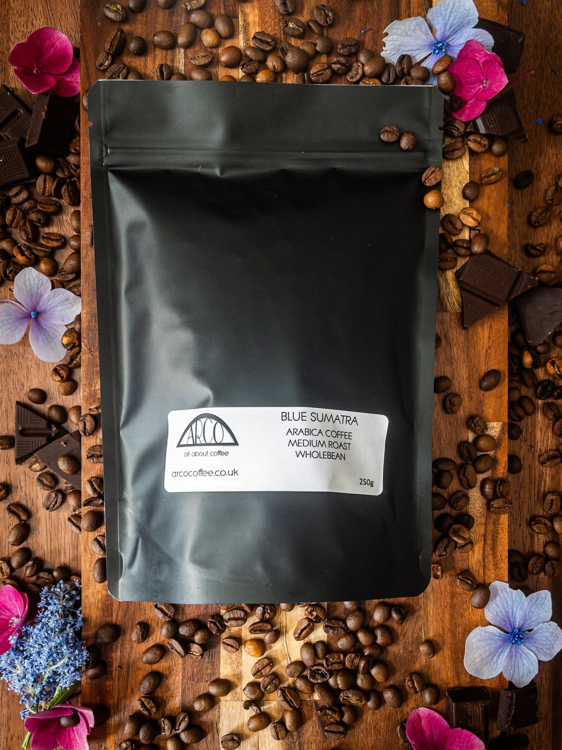 Blue Sumatra is a smooth and aromatic coffee with relatively little acidity and a distinctive chocolate finish. It's well balanced, and a lighter alternative to the Javan Indonesian coffees.